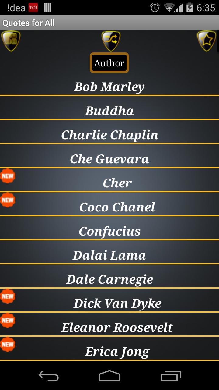 Nuestra lista de autores comprende incondicionales como Lincoln, Einstein, Aristóteles, Bob Dylan, Che Guevara, Dalai Lama, Gandhi, Woody Allen, Sartre, Kennedy, Caesar, Karl Marx, Tolstoy, Tolstoy, Swami Vivekananda, Mandela, Robert, Robert, Wordsworth, y muchas otras otras palabras. Como bono, también hemos incluido las citas más memorables de sus películas y canciones favoritas. Estas son de las películas históricas de Hollywood y las canciones más populares de nuestra generación. Entretener, humor, motivar e inspirar a sus amigos a través de esta aplicación tan fácil de usar.